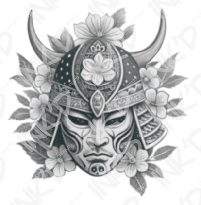 A large Geisha design, surrounded with flowers and traditional Japanese clothing.