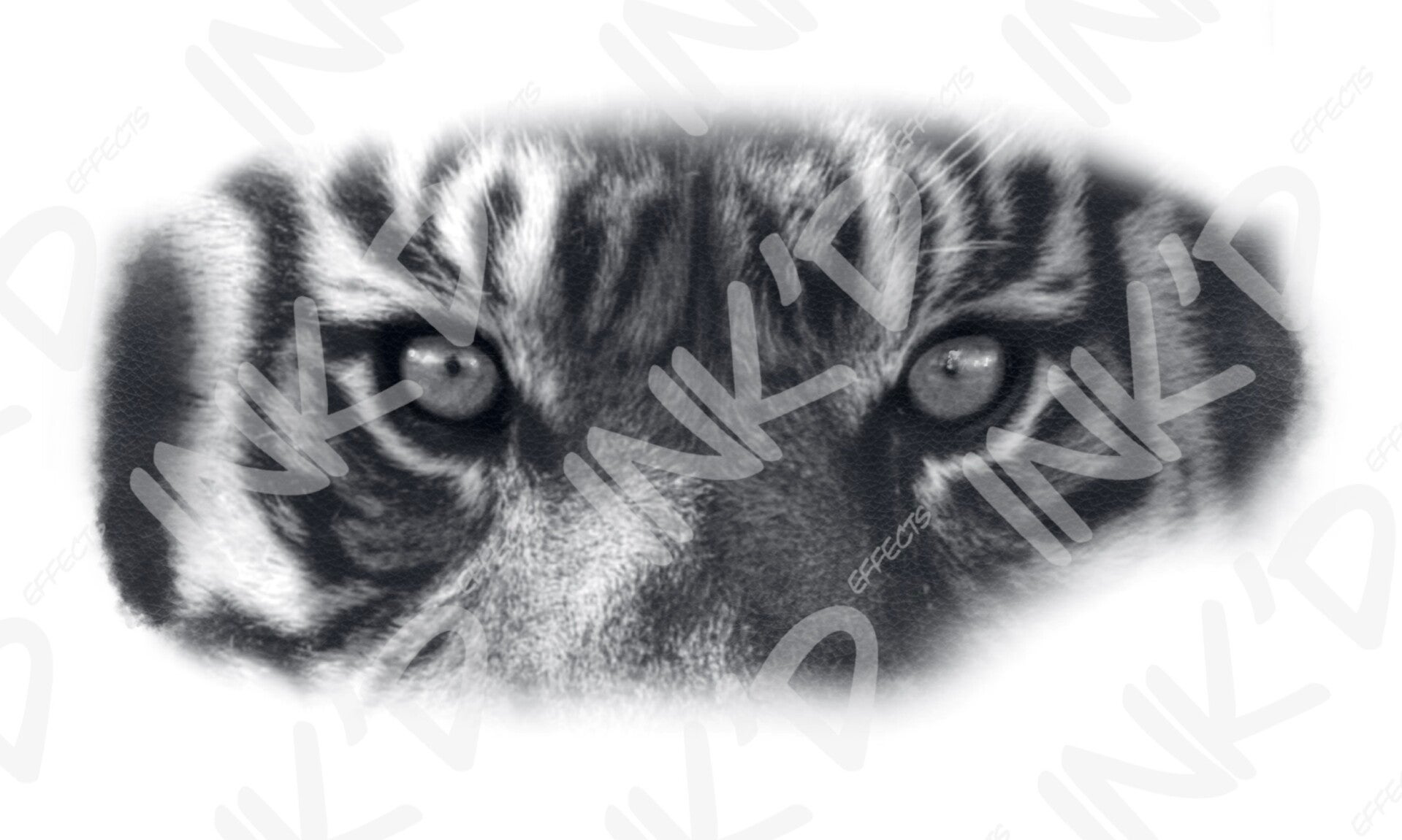 A pair of realistic Tiger Eyes. Great for the side of the forearm.